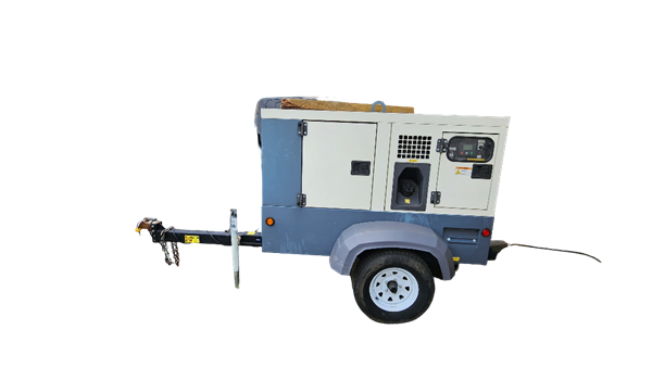 Diesel powered tow behind generator. Uses a 2" trailer ball.