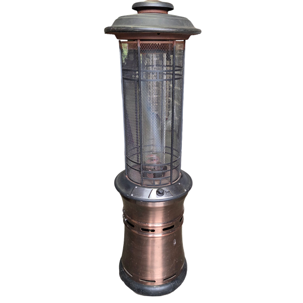 Outdoor propane heater. Copper base with a glass tube in the center for the flame to go up.
