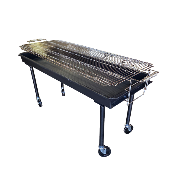 2' Wide and 5' long Charcoal BBQ. Legs thread in, making hauling away easier.