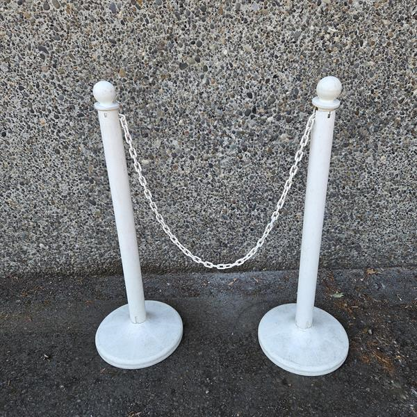 White plastic stanchions. Pictured with chains.
